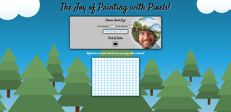 Time to bust out your happy little trees with this fun pixel art maker! Background art created with Adobe Illustrator, functionality powered by jQuery.